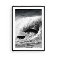 Poster in cornice nera - Un'onda potente nei toni del grigio - 50x70cm - La furia dell'oceano - Decorazione murale moderna per soggiorno e camera da letto ARTTOR