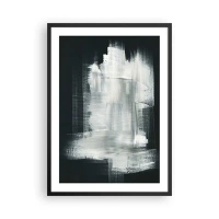 Poster in cornice nera - Composizione astratta in bianco su sfondo scuro - 50x70cm - Tessuto in verticale e in orizzontale - Decorazione murale moderna per soggiorno e camera da letto ARTTOR