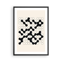 Poster in cornice nera - Composizione geometrica di cerchi bianchi e neri - 50x70cm - Gioco cinese: variazione - Decorazione murale moderna per soggiorno e camera da letto ARTTOR