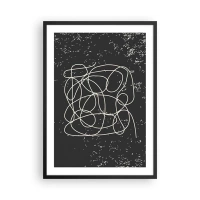 Poster in cornice nera - Linee caotiche su sfondo nero con punti bianchi - 50x70cm - Il caos dei pensieri - Decorazione murale moderna per soggiorno e camera da letto ARTTOR