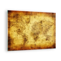 Quadro su vetro - Vecchia mappa del mondo d'epoca - 70x50cm - Questo mondo è strano - Decorazione murale moderna per soggiorno e camera da letto ARTTOR