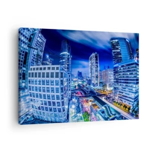 Quadro su tela - Stampe su Tela - Panorama notturno della città con grattacieli e lampioni - 70x50cm - Il ritmo notturno della città - Decorazione murale moderna per soggiorno e camera da letto ARTTOR