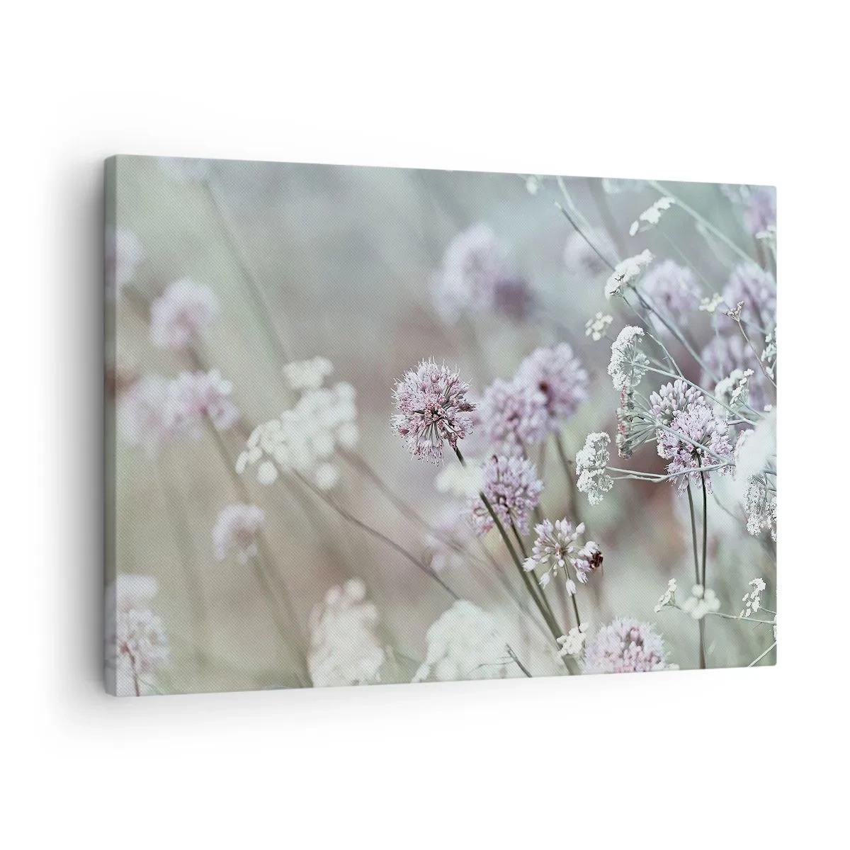 Quadro su tela - Stampe su Tela - Fiori delicati in tonalità pastello - 70x50cm - Le dolci filigrane delle erbe - Decorazione murale moderna per soggiorno e camera da letto ARTTOR