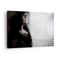 Quadro su tela - Stampe su Tela - Una donna in posa sensuale in una fotografia in bianco e nero - 70x50cm - Attimo sensuale - Decorazione murale moderna per soggiorno e camera da letto ARTTOR