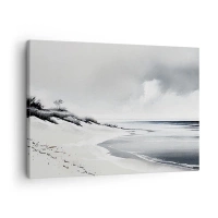 Quadro su tela - Stampe su Tela - Una spiaggia dalle tenui tonalità di grigio e blu - 70x50cm - Insieme da sempre - Decorazione murale moderna per soggiorno e camera da letto ARTTOR