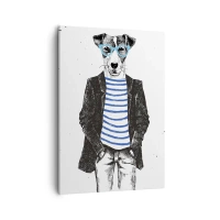 Quadro su tela - Stampe su Tela - Ritratto di un cane con occhiali e camicia da marinaio in stile umoristico - 50x70cm - Incantesimo sul cane - Decorazione murale moderna per soggiorno e camera da letto ARTTOR