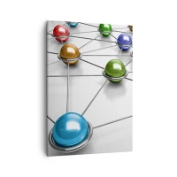Quadro su tela - Stampe su Tela - Palline colorate collegate da linee sottili su uno sfondo bianco - 50x70cm - Ragnatela cosmica - Decorazione murale moderna per soggiorno e camera da letto ARTTOR