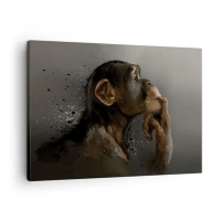 Quadro su tela - Stampe su Tela - Ritratto di una scimmia in posa riflessiva su uno sfondo grigio - 70x50cm - Sicuramente un pensatore - Decorazione murale moderna per soggiorno e camera da letto ARTTOR