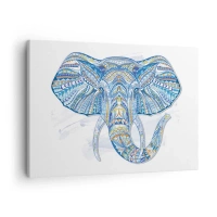 Quadro su tela - Stampe su Tela - Elefante geometrico nei toni del blu e dell'oro - 70x50cm - Intarsiato con oro e blu - Decorazione murale moderna per soggiorno e camera da letto ARTTOR