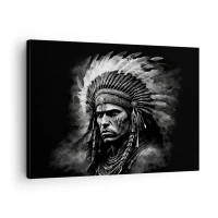 Quadro su tela - Stampe su Tela - Ritratto di un capo con un copricapo piumato su sfondo nero - 70x50cm - Capo e guerriero - Decorazione murale moderna per soggiorno e camera da letto ARTTOR