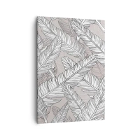 Quadro su tela - Stampe su Tela - Motivo in bianco e nero con foglie di banano su sfondo chiaro - 50x70cm - Vortice di piume - Decorazione murale moderna per soggiorno e camera da letto ARTTOR