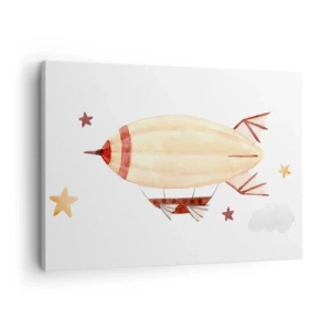 Quadro su tela - Stampe su Tela - Un dirigibile dipinto a mano su uno sfondo di stelle - 70x50cm - Nave volante - Decorazione murale moderna per soggiorno e camera da letto ARTTOR