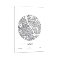 Quadro su vetro - Mappa di Varsavia sotto forma di illustrazione grafica - 50x70cm - Anatomia di Varsavia - Decorazione murale moderna per soggiorno e camera da letto ARTTOR