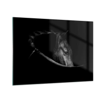 Quadro su vetro - Profilo di un cavallo nero in ombra con un occhio visibile - 70x50cm - Il principe nero - Decorazione murale moderna per soggiorno e camera da letto ARTTOR