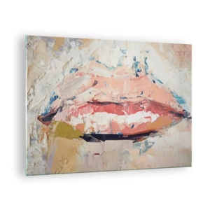 Quadro su vetro - Immagine astratta di labbra in una tecnica pittorica espressiva - 70x50cm - Risveglia i sensi - Decorazione murale moderna per soggiorno e camera da letto ARTTOR