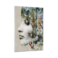 Quadro su vetro - Ritratto di una donna con accenti di colore astratti - 50x70cm - Emersa dal grigio - Decorazione murale moderna per soggiorno e camera da letto ARTTOR