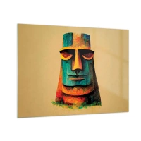 Quadro su vetro - Un ritratto colorato ispirato a una statua di pietra su uno sfondo beige. - 70x50cm - Statuario, ma simpatico - Decorazione murale moderna per soggiorno e camera da letto ARTTOR