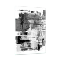 Quadro su vetro - Astrazione in bianco e nero con struttura geometrica - 50x70cm - Il grigio è bello - Decorazione murale moderna per soggiorno e camera da letto ARTTOR