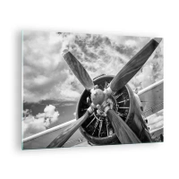 Quadro su vetro - Primo piano dell'elica di un aereo in bianco e nero. - 70x50cm - Il dominatore dell'aria - Decorazione murale moderna per soggiorno e camera da letto ARTTOR