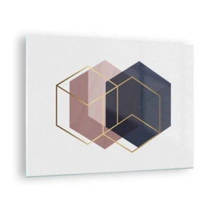 Quadro su vetro - Contorni dorati di cubi su uno sfondo di solidi blu navy e rosa - 70x50cm - La forza della semplicità - Decorazione murale moderna per soggiorno e camera da letto ARTTOR