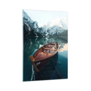 Quadro su vetro - Un porto pittoresco con barche a vela e case colorate - 50x70cm - Molo romantico - Decorazione murale moderna per soggiorno e camera da letto ARTTOR