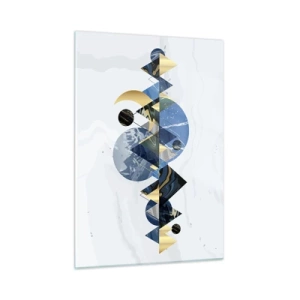Quadro su vetro - Figure geometriche astratte nei toni del blu navy e dell'oro - 50x70cm - Paesaggio geometrico - Decorazione murale moderna per soggiorno e camera da letto ARTTOR