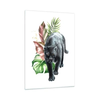 Quadro su vetro - Pantera nera su uno sfondo di foglie tropicali in stile acquerello - 50x70cm - Cuore selvaggio - Decorazione murale moderna per soggiorno e camera da letto ARTTOR