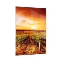 Quadro su vetro - Viti in un campo al tramonto - 50x70cm - Profumo di frutta con una nota di sole - Decorazione murale moderna per soggiorno e camera da letto ARTTOR
