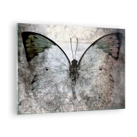Quadro su vetro - Farfalla astratta su uno sfondo invecchiato - 70x50cm - Guarda prima che scompaia - Decorazione murale moderna per soggiorno e camera da letto ARTTOR