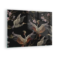 Quadro su vetro - Uccelli in volo con fiori su sfondo nero, stile retrò - 70x50cm - Uccello fantastico - Decorazione murale moderna per soggiorno e camera da letto ARTTOR
