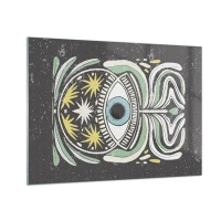 Quadro su vetro - Occhio grafico con ornamenti tribali su sfondo scuro - 70x50cm - Rituali tribali - Decorazione murale moderna per soggiorno e camera da letto ARTTOR