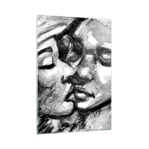 Quadro su vetro - Schizzo in bianco e nero di un tenero bacio - 50x70cm - Un attimo di tenerezza - Decorazione murale moderna per soggiorno e camera da letto ARTTOR