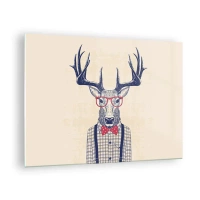 Quadro su vetro - Illustrazione di un cervo che indossa occhiali e papillon - 70x50cm - Divertente stravaganza - Decorazione murale moderna per soggiorno e camera da letto ARTTOR