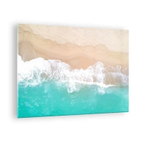 Quadro su vetro - Vista aerea della spiaggia con acqua turchese e onde bianche - 70x50cm - Un tocco carezzevole - Decorazione murale moderna per soggiorno e camera da letto ARTTOR