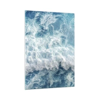 Quadro su vetro - Onde blu che si infrangono sulla riva - 50x70cm - Con gioia e saltellando - Decorazione murale moderna per soggiorno e camera da letto ARTTOR