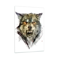 Quadro su vetro - Un'immagine di un lupo minaccioso con la bocca aperta e uno sguardo intenso - 50x70cm - Non si passa! - Decorazione murale moderna per soggiorno e camera da letto ARTTOR