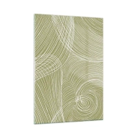Quadro su vetro - Una composizione verde e beige con forme organiche dinamiche - 50x70cm - Astrazione ritmica - Decorazione murale moderna per soggiorno e camera da letto ARTTOR