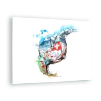 Quadro su vetro - Dipinto ad acquerello di un paesaggio svizzero con una bandiera e un orologio - 70x50cm - Lo spirito della Svizzera - Decorazione murale moderna per soggiorno e camera da letto ARTTOR