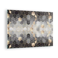 Quadro su vetro - Motivo geometrico di esagoni in linee dorate - 70x50cm - Composizione di diamante - Decorazione murale moderna per soggiorno e camera da letto ARTTOR