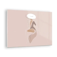 Quadro su vetro - Silhouette di una donna con un cappello su uno sfondo beige - 70x50cm - Essere una dama - Decorazione murale moderna per soggiorno e camera da letto ARTTOR