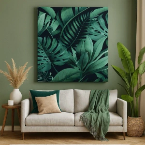 Quadro su tela - Stampe su Tela - Foglie tropicali in tonalità di verde intenso - 70x50cm - Dal profondo del verde tropicale - Decorazione murale moderna per soggiorno e camera da letto ARTTOR