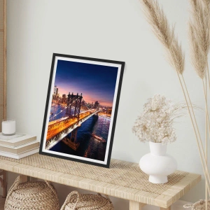 Poster in cornice nera - Il ponte luminoso fino al cuore della città - 30x30 cm