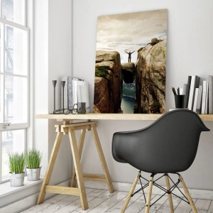 Il quadro su vetro è realizzato con vetro dello spessore di 4 mm. I bordi del vetro hanno una smussatura trapezoidale. Il quadro è sicuro nel suo utilizzo ed è pronto per essere appeso: possiede dei punti di sospensione metallici fissati alla parte posteriore del quadro e dei distanziatori in schiuma che permettono una distanza uniforme del quadro dalla parete.