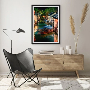 Poster in cornice nera - Sera in una via cinese - 30x30 cm