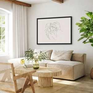 - Questo poster presenta un disegno minimalista di una coppia innamorata, eseguito con linee delicate. Perfetto come sobria decorazione d'interni. Il prodotto include una cornice nera di 50x70 cm.