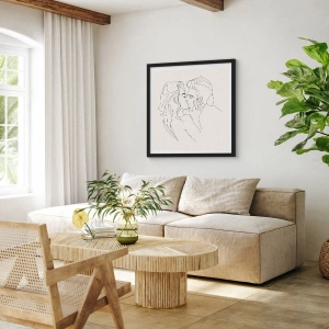 Poster in cornice nera - Un disegno minimalista di una coppia innamorata, realizzato con linee delicate. - 50x70cm - Intrecciati dal sentimento - Decorazione murale moderna per soggiorno e camera da letto ARTTOR