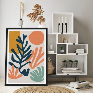 Poster in cornice nera - Una composizione colorata di forme vegetali in stile moderno - 50x70cm - Mare di coralli - Decorazione murale moderna per soggiorno e camera da letto ARTTOR