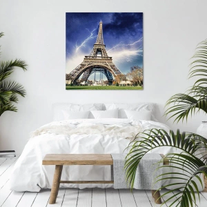 Quadro su tela - Stampe su Tela - La Torre Eiffel con un cielo tempestoso e fulmini sullo sfondo - 70x50cm - La signora delle tempeste - Decorazione murale moderna per soggiorno e camera da letto ARTTOR