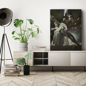 Questo dipinto si adatta perfettamente a spazi dal carattere scuro e gotico o ad interni che cercano una decorazione unica dal profondo simbolismo. Il gioco di luci e ombre utilizzato sulla tela mette in risalto i dettagli sia dei personaggi che dell'ambiente circostante, conferendo all'opera un'ulteriore dimensione e intensità.