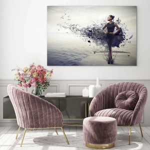 La stampa artistica su vetro "Donna in abito sfocato su uno sfondo di acqua calma" è una decorazione unica che unisce arte moderna e bellezza discreta. Il motivo centrale è la figura di una donna in un abito artistico, la cui forma sfocata aggiunge un carattere unico all'insieme. Lo sfondo raffigura una superficie calma dell'acqua, che conferisce armonia e pace alla composizione.
